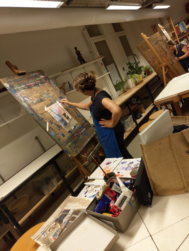 Cursisten werken in principe met eigen materiaal. Ben je niet in bezit van schildersmateriaal, dan kun je gebruik maken van aanwezig materiaal (acryl verf en penselen, pastelkrijt, inkt, kroontjespennen en penselen, houtskool) voor 10,- per seizoen. Tijdens een proefles is gebruik van aanwezige materialen gratis.